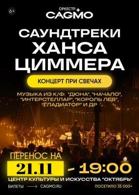 ЦКИИ Октябрь » Афиши » !ПЕРЕНОС! Оркестр "CAGMO" - "Саундтреки Ханса Циммера" при свечах