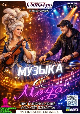 Каждое время звучит и выглядит по-своему. А для того, чтобы понять прошлое, не нужны даты. Можно просто послушать его музыку и посмотреть на его одежду. Проект «Музыка и мода» — путешествие по эпохам, где стиль и звук становятся языком времени: от барокко и классицизма до джаза, рока, поп-культуры и мира трендов без границ. Почему в одни времена музыка давит и поражает, а в другие говорит тихо и честно? Кто диктует моду сегодня? И почему настоящая музыка не исчезает, а лишь меняет форму? Музыка и мода — это не про прошлое. Это про нас. Это будет разговор о скорости жизни, свободе, чувствах, стиле и выборе. Концерт-лекция «Как звучит и выглядит время?».